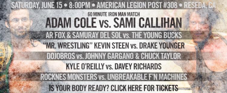 Sami Callihan teve ontem o seu show de despedida do Pro Wrestling Guerrilla, lutando num 60-Min Iron Man Match com Adam Cole pelo PWG World Title, e perdendo.