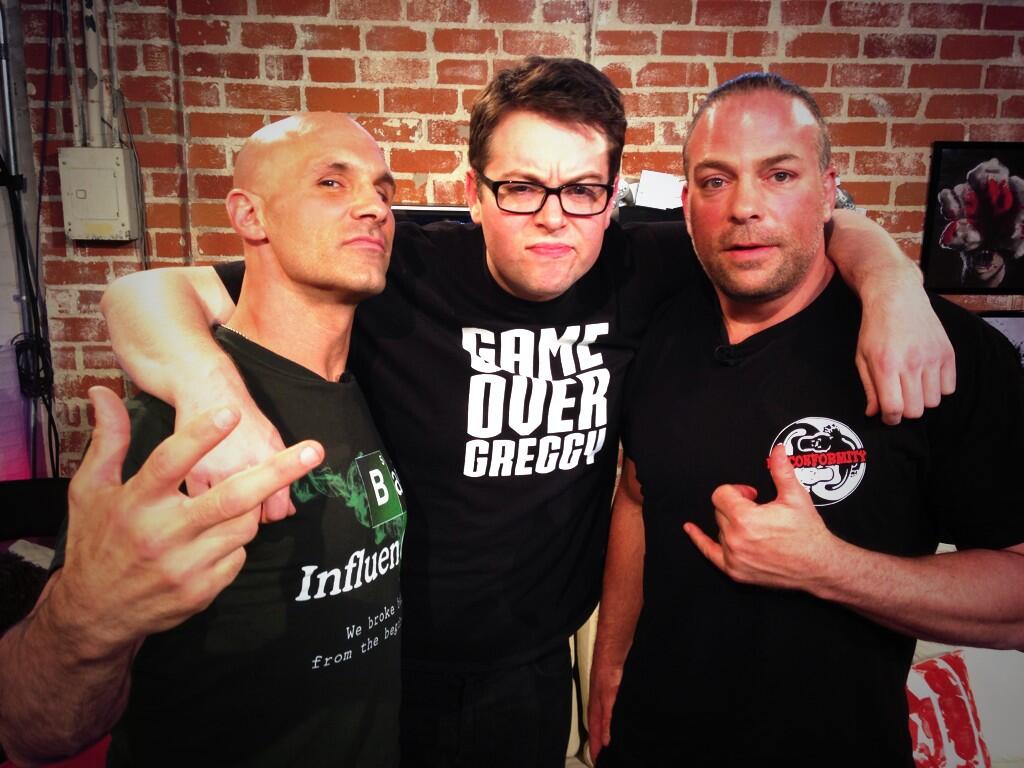 [Vídeo + Fotos] Christopher Daniels se reúne com RVD na IGN e aplica knife-edge chop ao apresentador